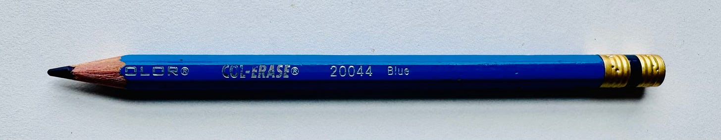 My favorite sketching material of choice is this col-erase pencil. It butters over the page and smudges less than a graphite pencil (for my fellow meticulous neat freaks).